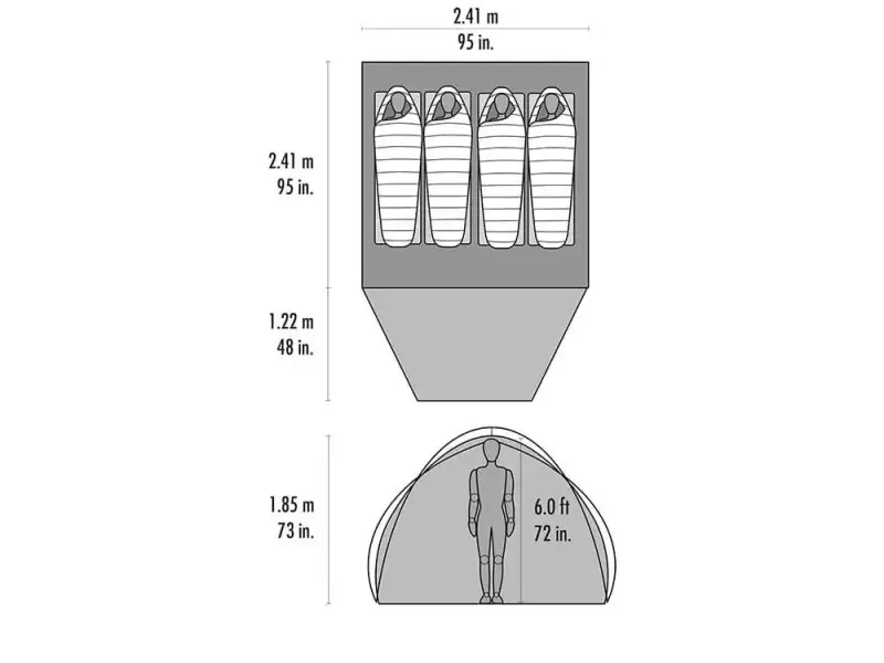頑丈なポール構造を土台に、ラフな使用や風雨にも耐える丈夫な生地を使用しています。インナーテントやレインフライには、滑らかな動きのステンレスのジッパーを採用しています。