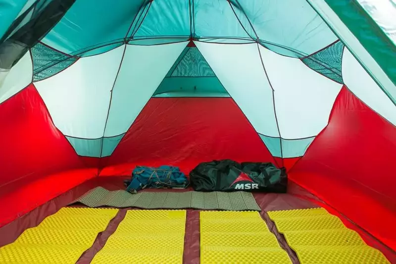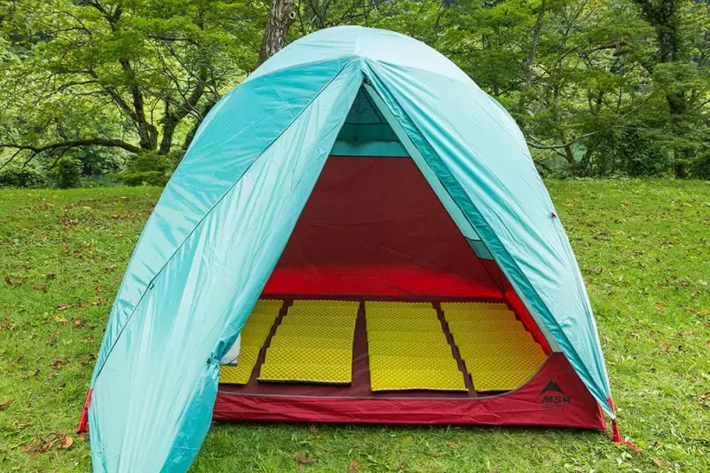 テントにはポーチライトが付いているので夜間の出入りもスムーズ。室内には人数分のポケットとハングループも十分に備えています。前室にも十分な広さがあり、居住性は抜群です。