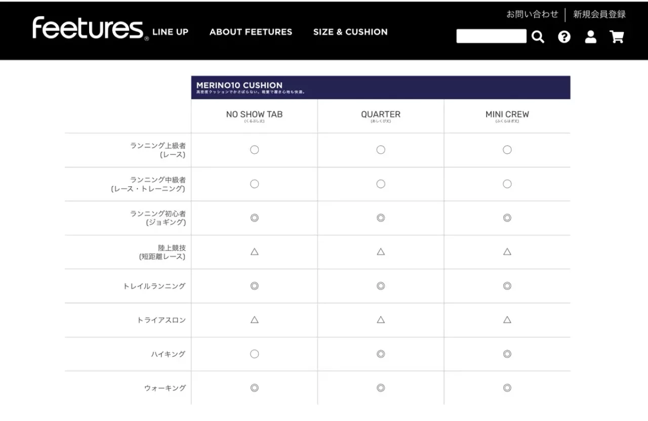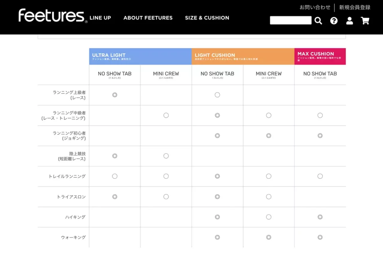 実際に履いてみた感じは、クッション性が適度にある割には、通気性に優れていて足は常にドライ。生地素材の伸縮性が高く、シューズの中で足が滑り動くということはほぼない。メーカーサイトのチャート図通りに選択すれば、OK。特にトレイルランや登山だと、長時間の着用を強いられることが多い。そんな環境で、feeturesは心強いギアになるだろう。