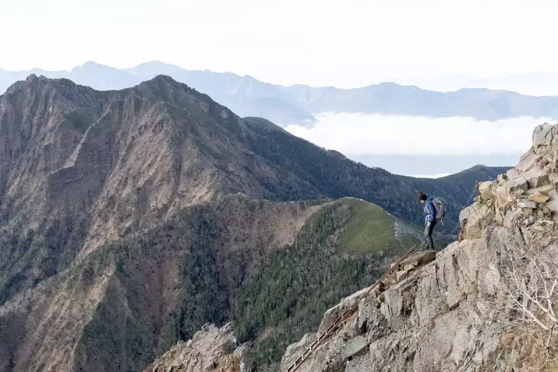 赤岳から北に伸びる縦走路は北アルプスの縦走登山に挑戦する前の練習場としても人気があり、素晴らしい景色を楽しむことができます。この稜線の西側には登山基地として多くの人が利用する赤岳鉱泉、行者小屋があります。