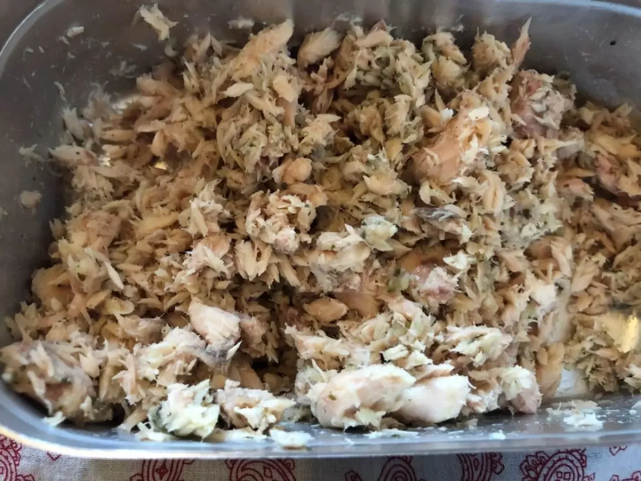 SABAはご存知のサラダチキンのような、かたまりで入っているのでメンティンの中に入れて細かくほぐしていきます。