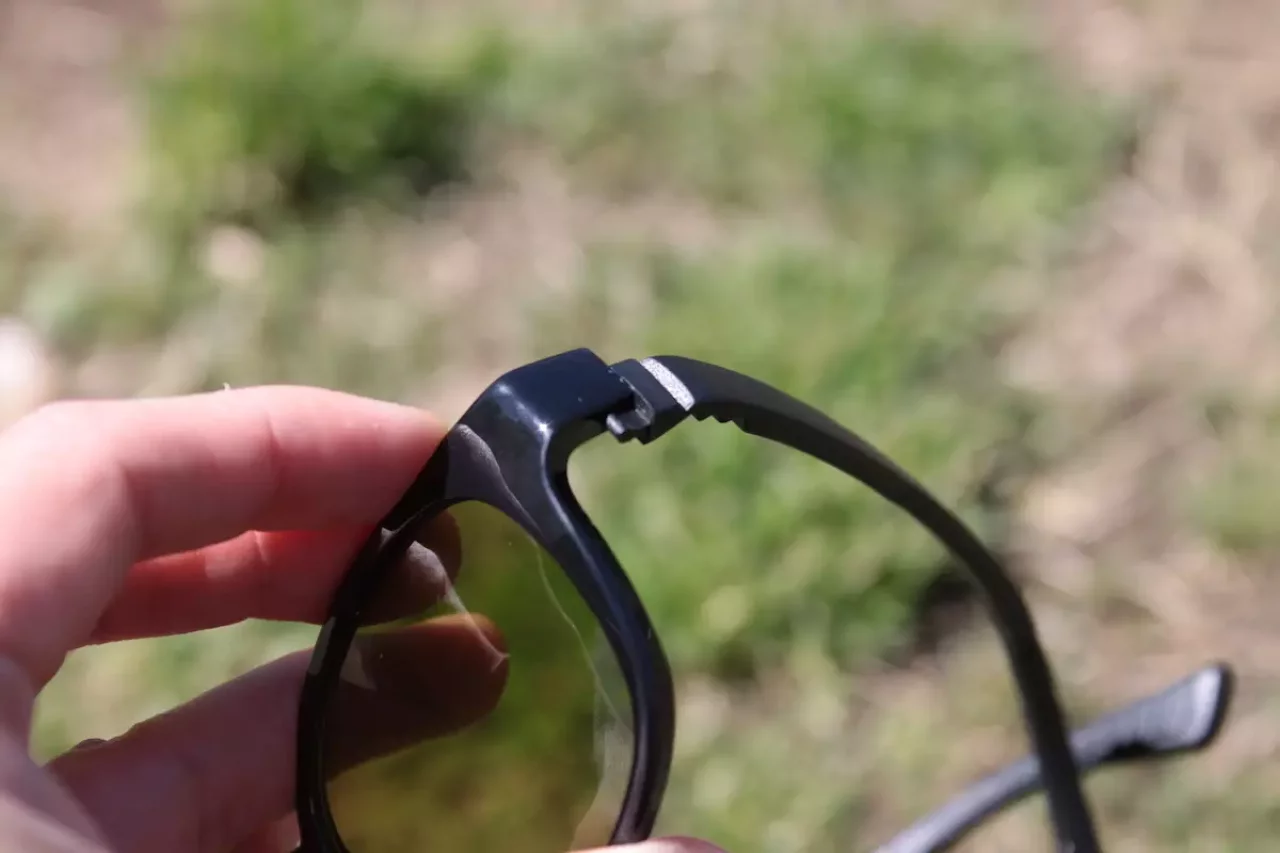 耳の上にあたるテンプルの先端部分はラバーに近い素材で汗をかいてもヌルヌルしづらいのです。これが汗っかきの僕にはよくて、濡れることでサングラスが落っこちてしまう心配もなければ、かけて気持ち悪く感じづらいのです。