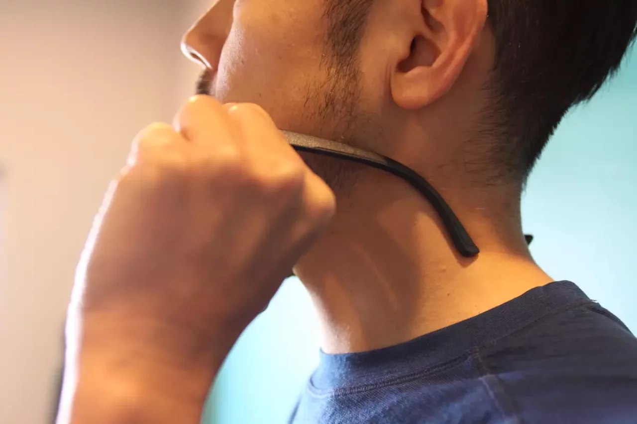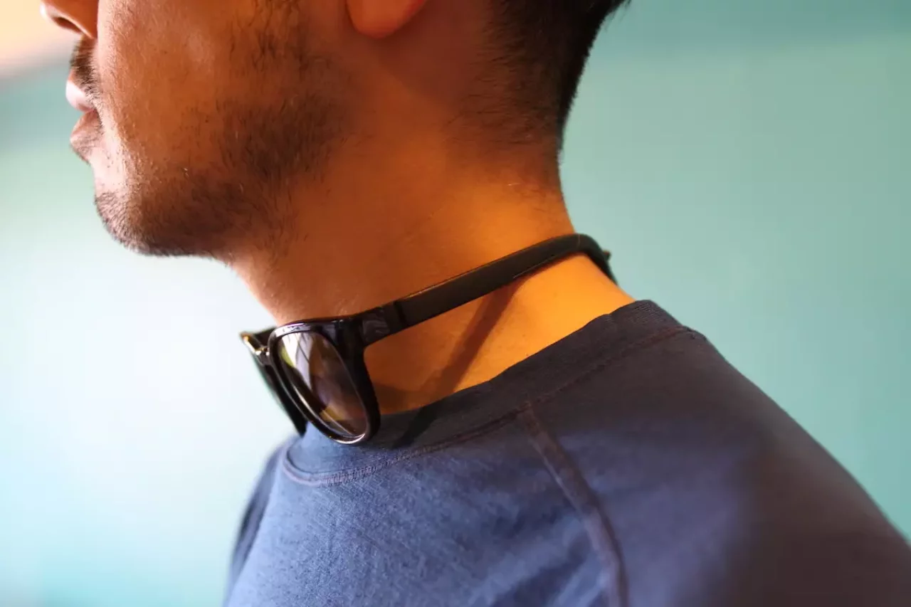 またサングラスを外して頭にかける、または首に引っ掛けることも、柔軟性のあるテンプルがなせる業です。