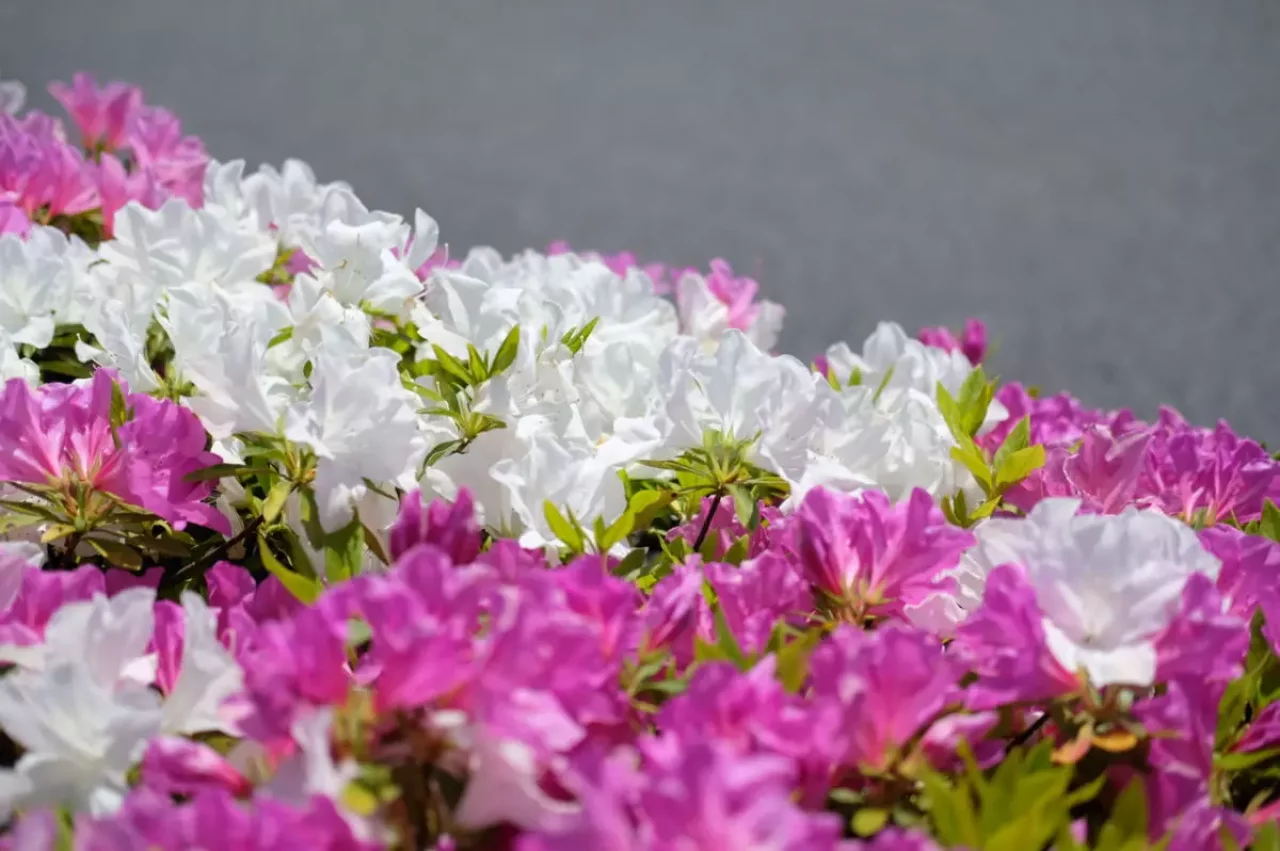 そして、それらと入れ替わるようにツツジが町をあちこちでにぎやかし、