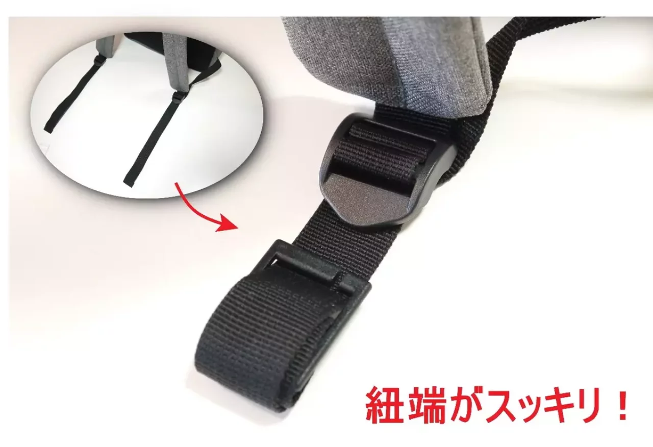 電車で座ったとき、リュックの紐端が隣の座席まで伸びていたことありませんか?前に立つ人の邪魔をしていたり、乗り降りする人の邪魔をしていたり。背負うだけでもなぜか自己主張してくる紐端。。。