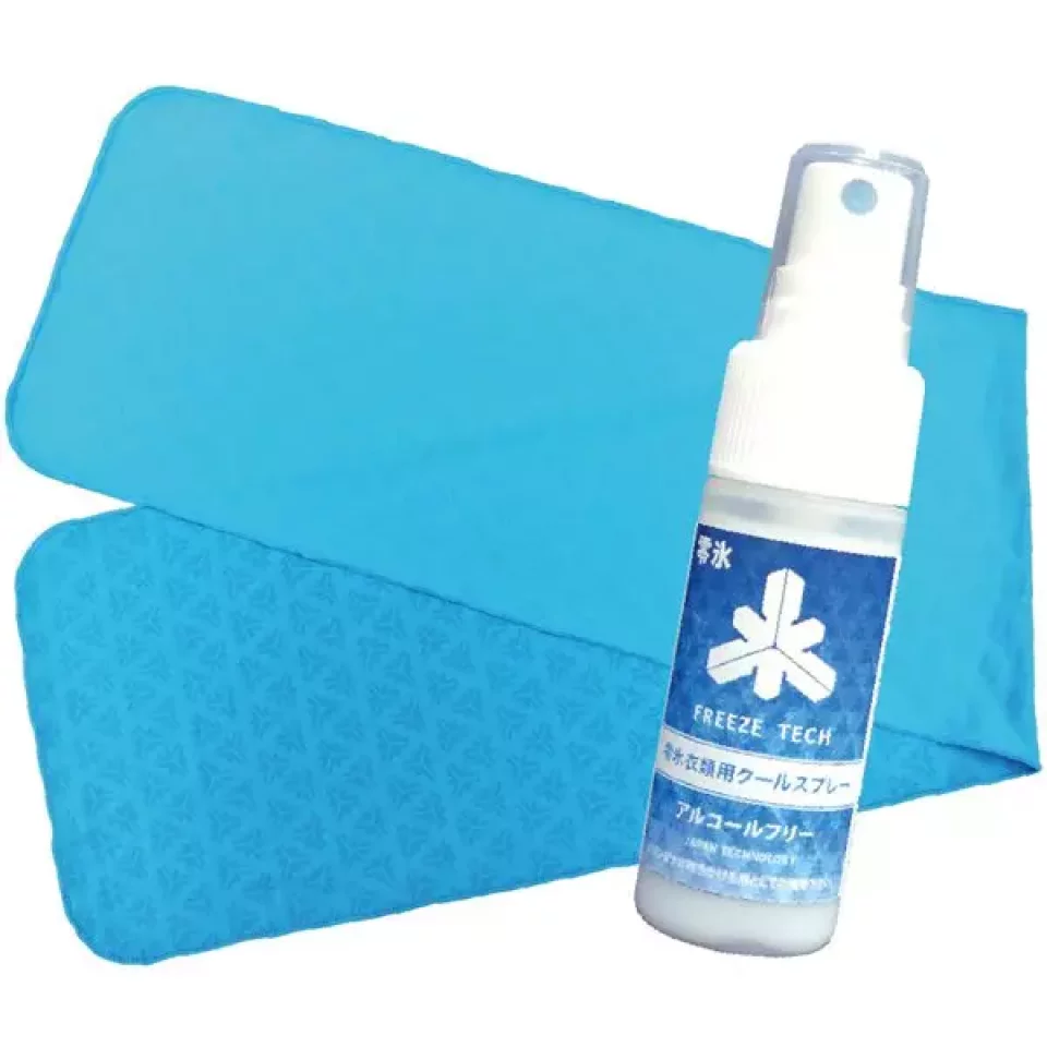 また、セットされている零氷衣類用クールスプレーを吹きかけることで冷感がさらにアップするという優れものです。首にかけておくとずっと気持ちよく、日焼け対策にも効果的です。