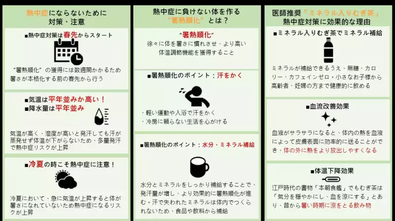 医師が推奨する「ミネラル入りむぎ茶」が熱中症対策に効果的