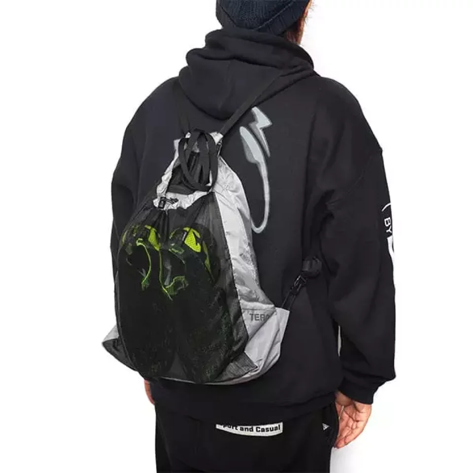 アウトドアスペックなカッコいいエコバッグとして人気のたかいグラナイトギアのエアグロッセリーバッグ。シューズなどを持ち運ぶのにも便利で、普段使いにもばっちりな使い心地です。