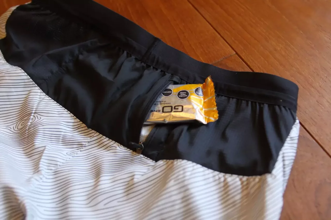 内側のポケットは貴重品を入れておくのに便利なコンパクトサイズのポケットです。ニットインナーが付いているので、アンダーウェアなし、これ1本で非常に涼しく走ることができます。