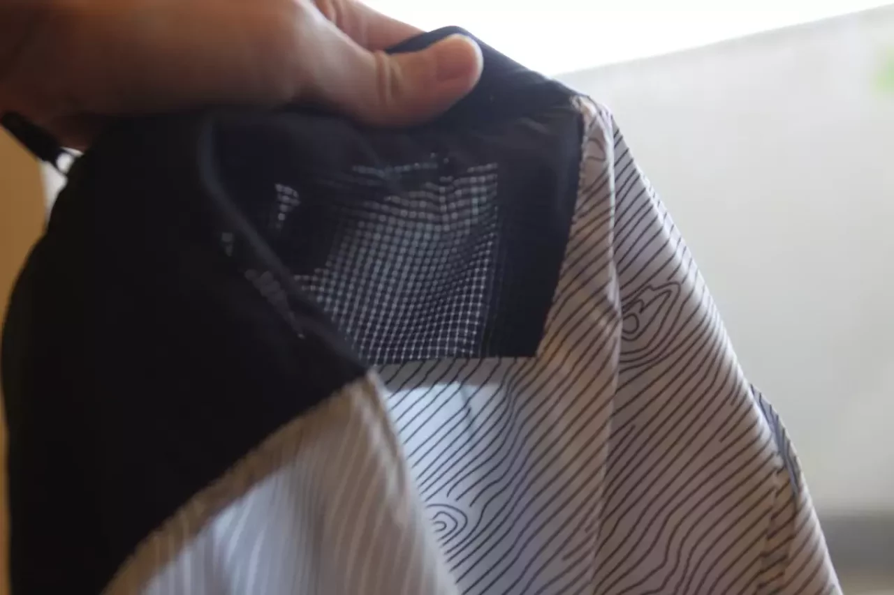 生地のデザインは山の断面図を想起するような、等高線をモチーフに作られていて、ユニークなデザインとなっています。