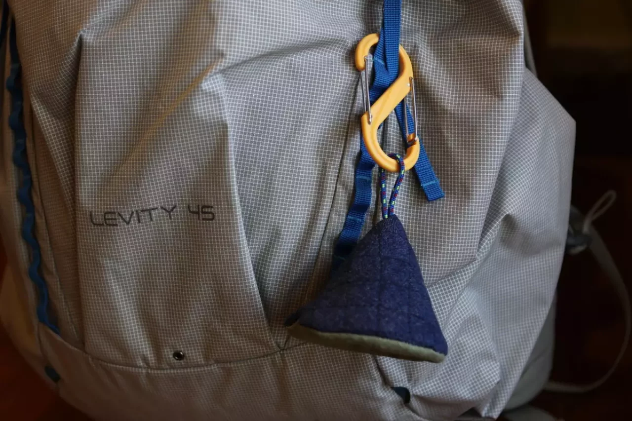 クッカーセットに入れずとも、山型鍋掴みの頂上にロープがついているので、ザックにつけておけばチャームにもなります。休憩時にコーヒーを飲むときなど、ザックの外側に付けておくことで、仲間がお湯を沸かすときに貸すことができるので便利です。
