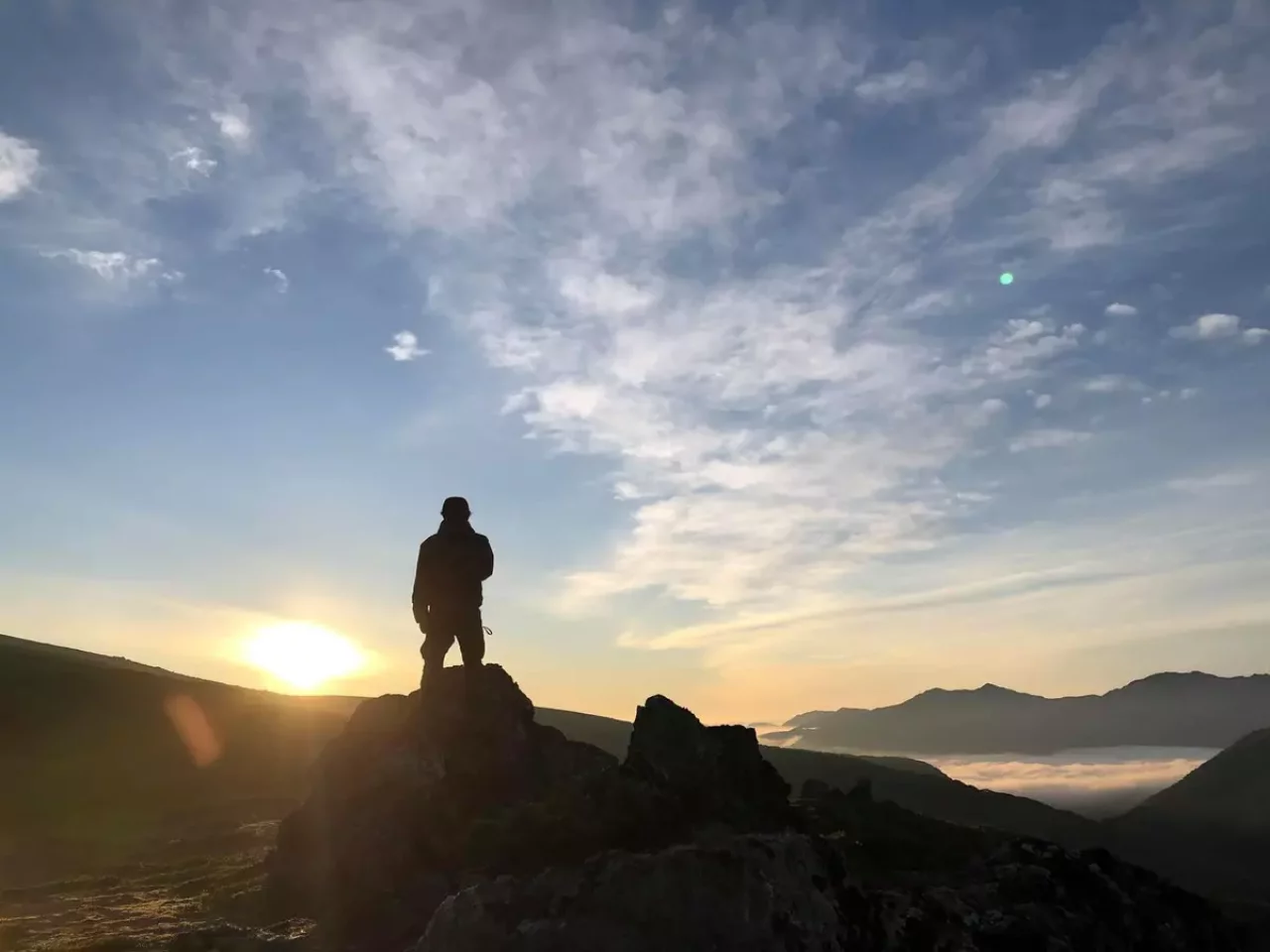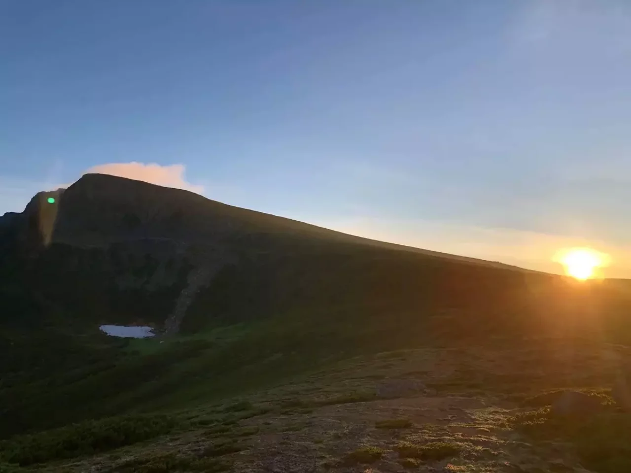 忠別岳から上がる朝陽を受けて。