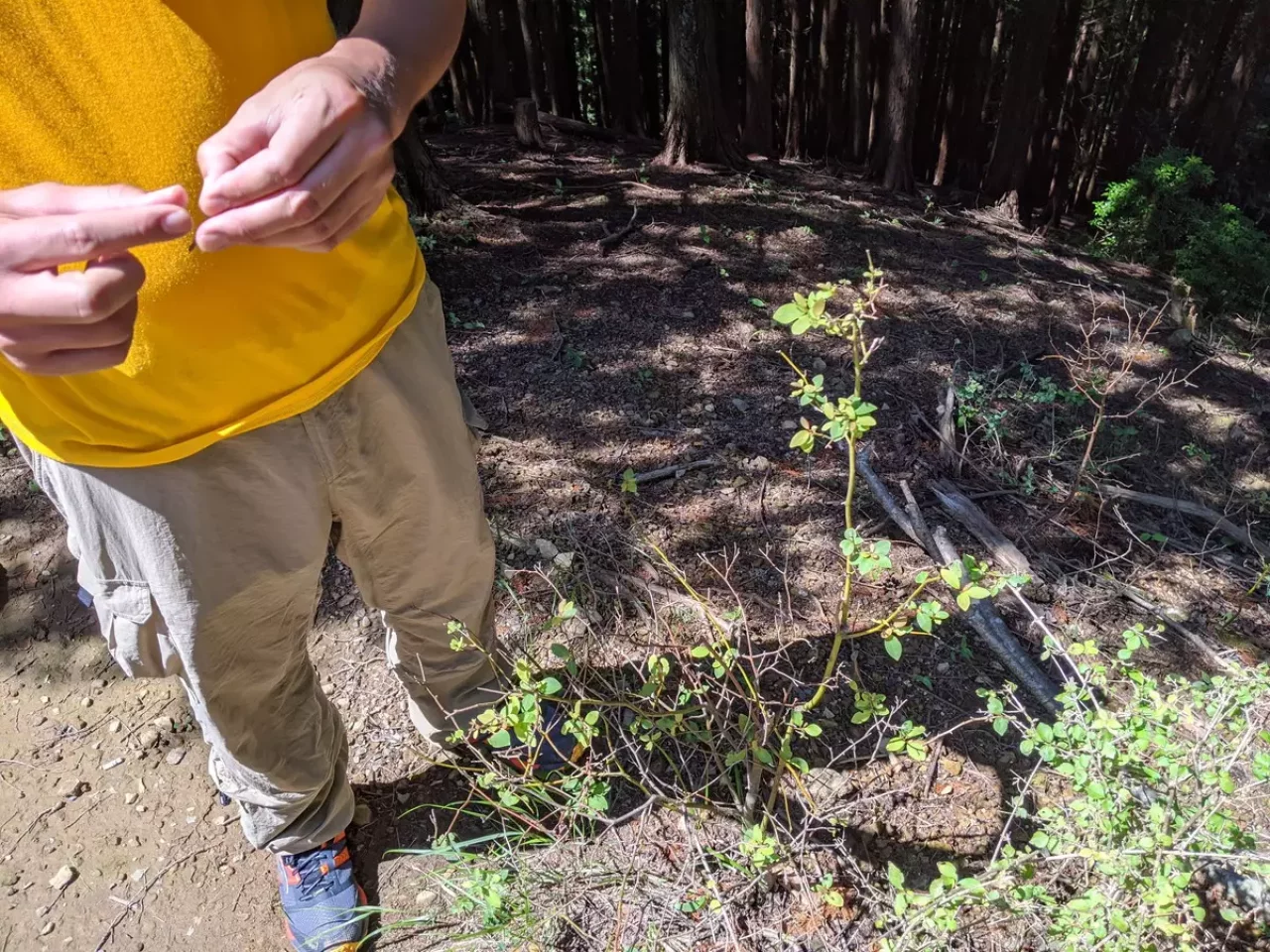 早々にDが「これ楮だね。和紙の原料。クワ科の植物で実は甘みがあるんだよ。」とD以外見向きもしなかった木に興味を吹き込む。