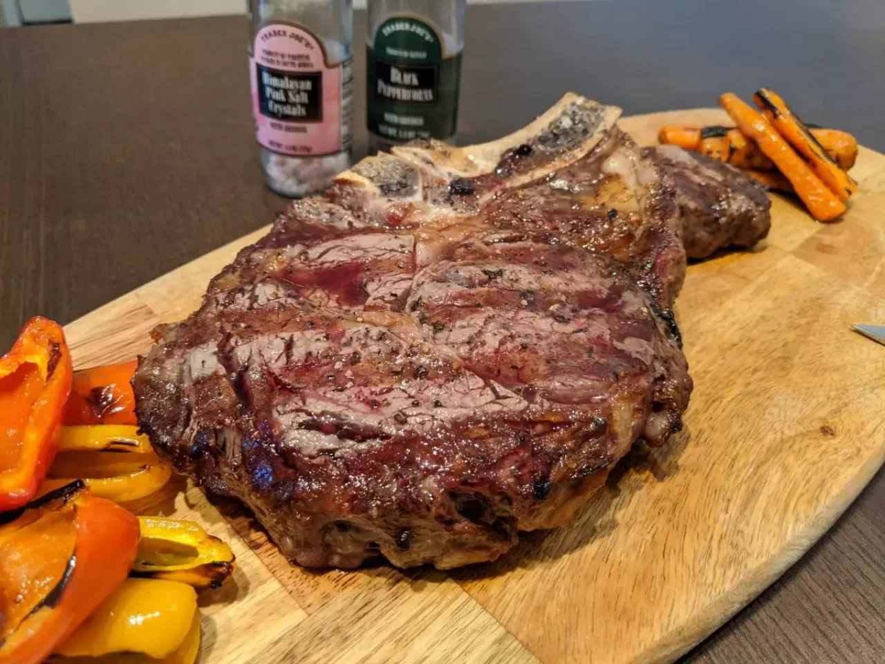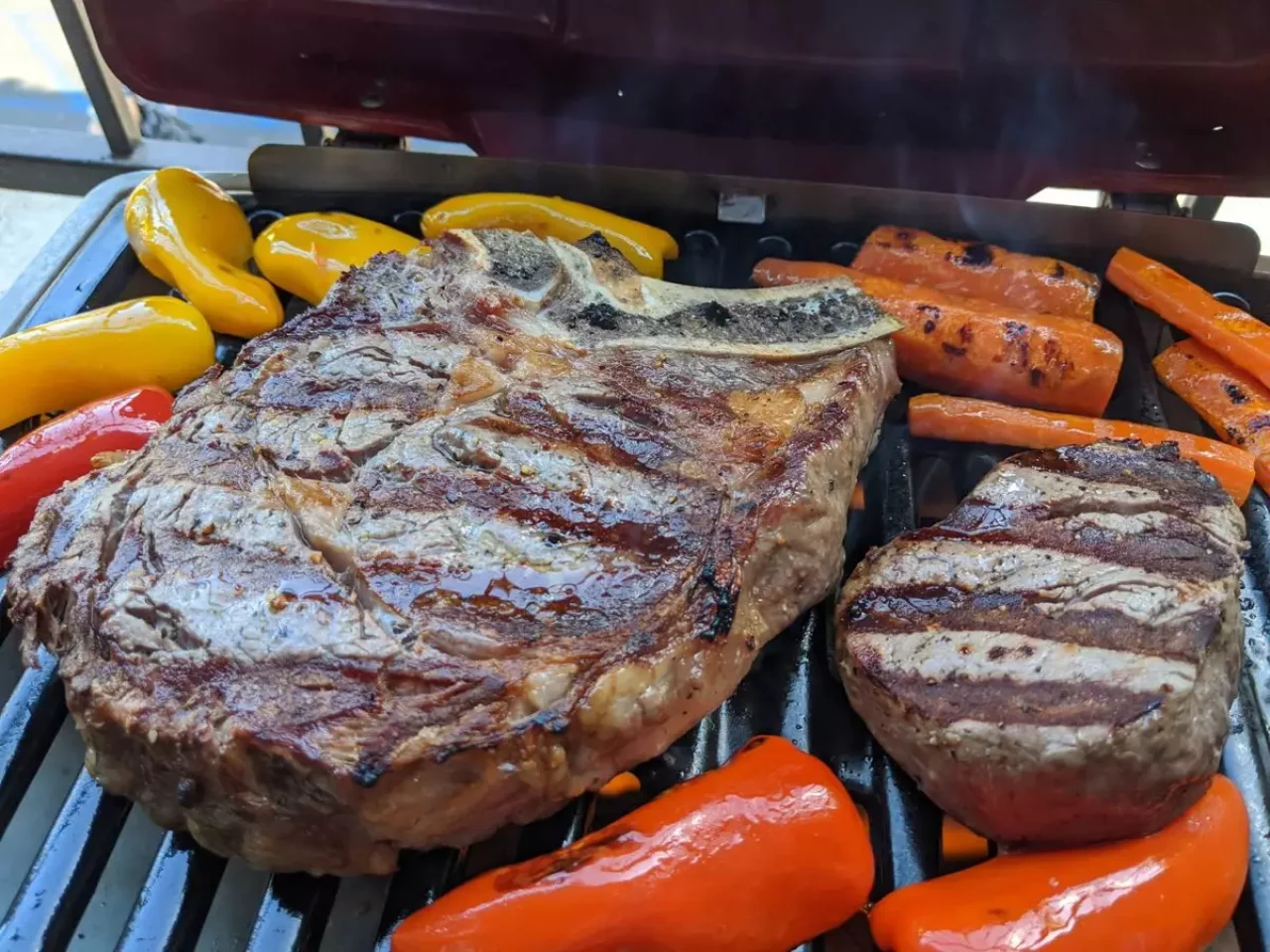 BBQで楽しむ牛肉はどこでも売っていますが、お気に入りはWhole foodsのリブアイステーキです。1kgの塊を買っても3200円(1USD/106円換算)とそんなに高くありません。塩・胡椒を振り、オリーブオイルを塗ってグリルで焼けば20分ほどで出来上がります。