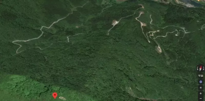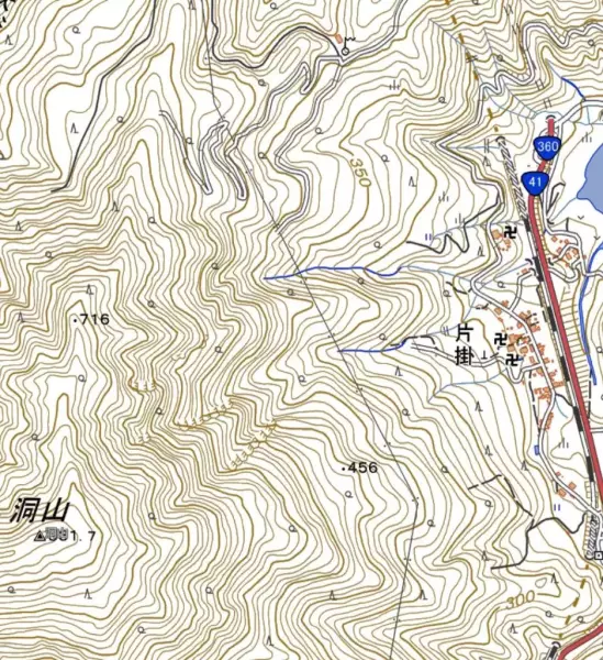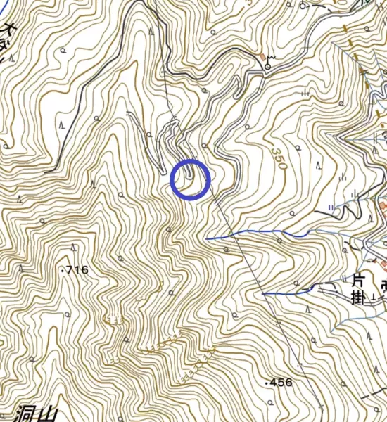 上部の虫眼鏡の検索窓に山の名前を入力します。もちろん、初期画面からマウスのスクロールホイールでズームして到達してもOKです。では、図中の「洞山」を登ることにしましょう。みなさんなら、どんなルートで登りますか?