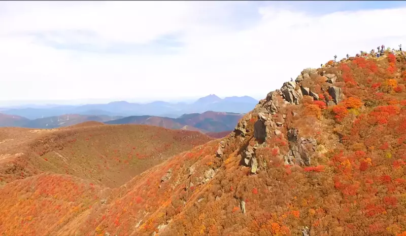 玖珠郡九重町から竹田市北部にかけて広がる「くじゅう連山」。九州本土最高峰の中岳をはじめ、標高約1,700m級の山々が連なっており、“九州の屋根”とも呼ばれています。なかでも大船山(たいせんざん)は雄大な山容で登山者を魅了するくじゅう連山の東の主峰です。山頂にある御池(おいけ)は、くじゅう随一の紅葉の名所であり、ドウダンツツジなどの樹々が山肌とともにその湖面も真っ赤に染め上げます。