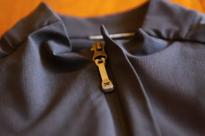 襟は少し立ち上がっていて冷たい空気が首元から入らないように作られていますが、テクニカルな見栄えにならない自然な作りとなっています。