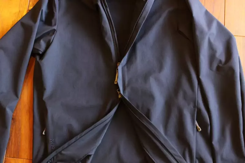 フロントジップはダブルジッパー使用なので、温度調整がしやすく、丈が長いことで下から冷たい風が入ってくることがないので、稜線に出ても安心感のあるジャケットです。