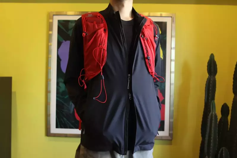 シャカシャカしたウィンドブレーカーとは違ってストレッチ性があるため動きやすく、 T シャツを着て上からデイブレーカーを羽織っても汗で肌と生地がペタペタとくっつくような気持ち悪さがないのも魅力のひとつです。