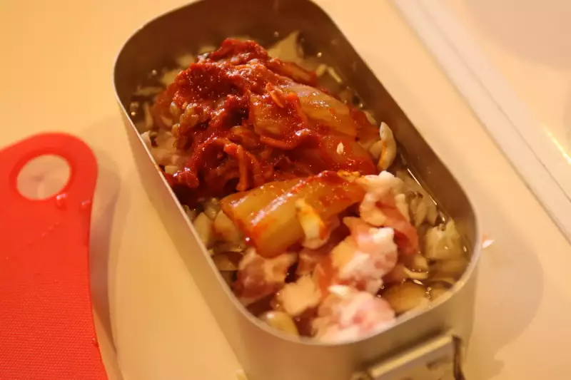 しらす干し以外の材料をダイソーメスティンに入れる