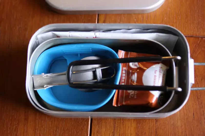 - ダイソーメスティンにもそれなりに山ごはん道具をスタッキングできる