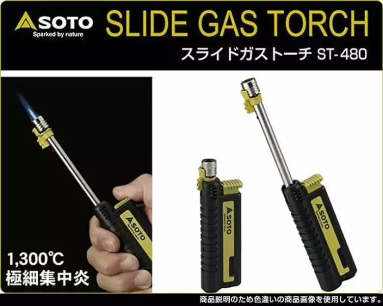 火口がのびる小型耐風バーナーで、野営時において奥の火種に着火させるのに便利です。使用時は伸ばして安全に、収納は縮めてコンパクトになるので、クッカーなどに仕舞っておけます。