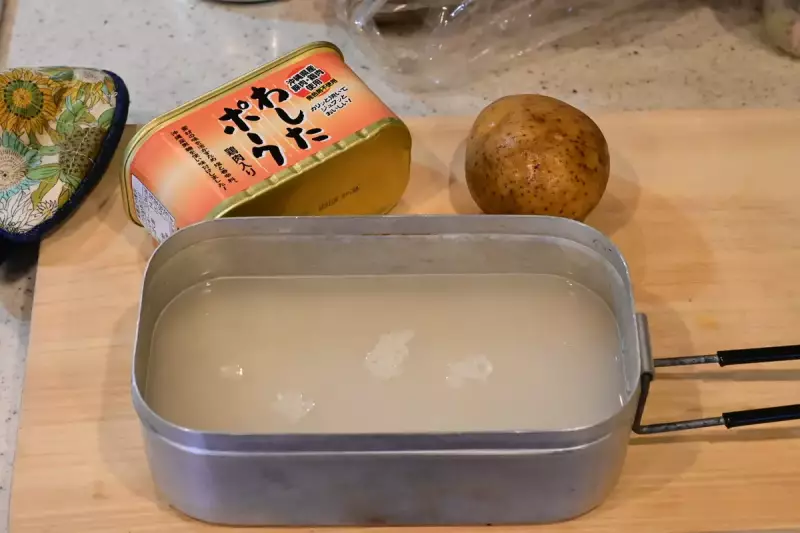 全ての食材を入れたら弱火で15分炊き込みます。じゃがいもとポークランチョンミートをメスティンの中に入れると水かさが増し火をかけている時に吹きこぼれがしやすくなるので、最初は蓋を開けて強火でグツグツと煮込んでお米に水をある程度含ませます。