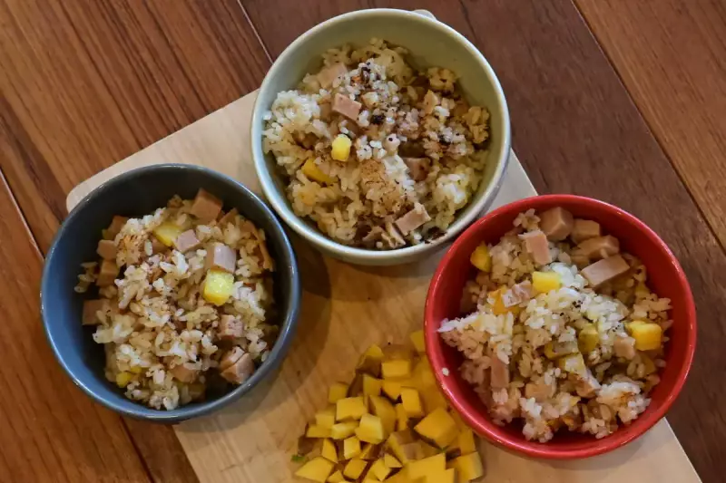 - ポークランチョンミートの代わりにソーセージも美味しい
