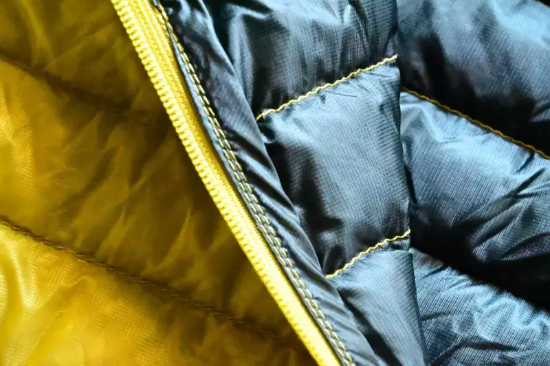 肩、袖口、脇の部分はステッチが施されておらずダウンの量が少なく調整されています。これによって軽量化が行われています。