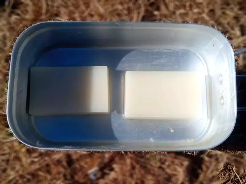 加熱している際は蓋をし、餅が柔らかく火が通ったら餅をメスティンから外します。餅は蓋の上に置いておきます。
