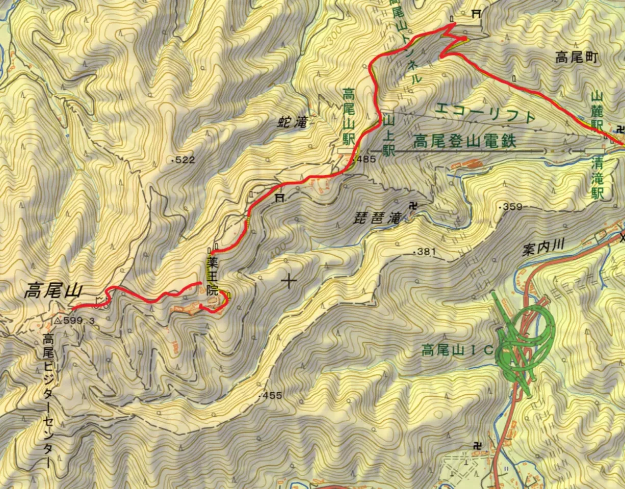 | トイレ数 | 2箇所 ケーブルカー高尾山駅前トイレ、高尾梅の郷まちの広場(コース途中にはなし) |