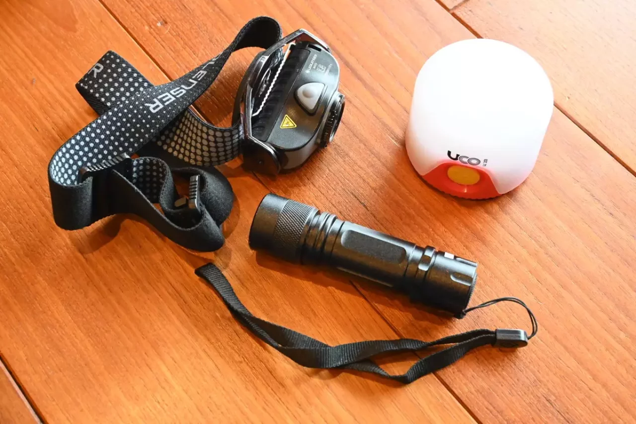 次にランタンです。ヘッドライトをランタン代わりに使用します。地面に置く場合は、ヘッドライトの上に水の入ったプラティパスを乗せればランタンになります。