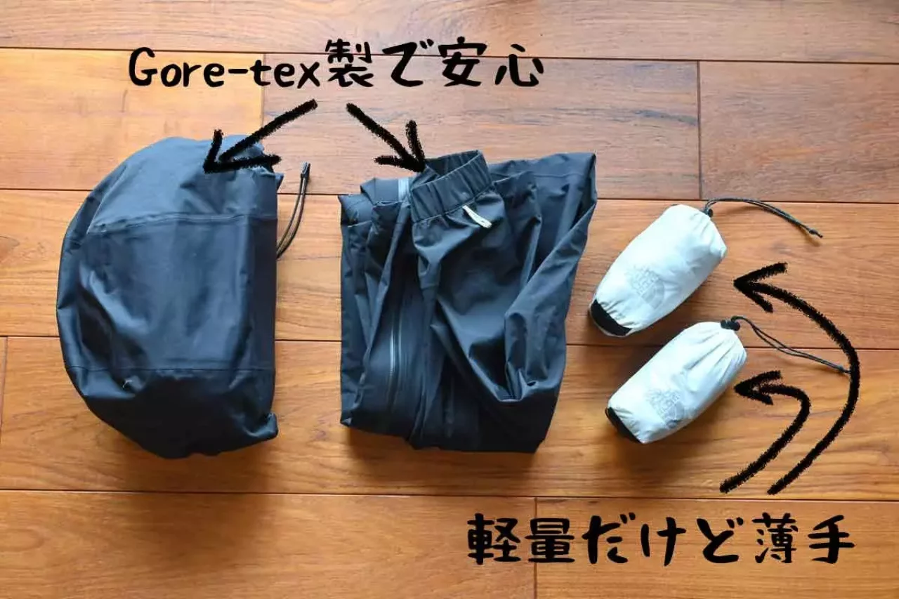 レインウェアの軽量化は注意が必要です。風速1mで体感温度が1度下がるので、寒い季節に薄手のレインジャケットで縦走登山をするのは危険です。この場合は重量を優先順位にするのではなく耐候性を重視したレインウェアを持ち歩くべきです。低体温症のリスクが生じるのでシーンに合わせたレインジャケットの携行をするようにしましょう。