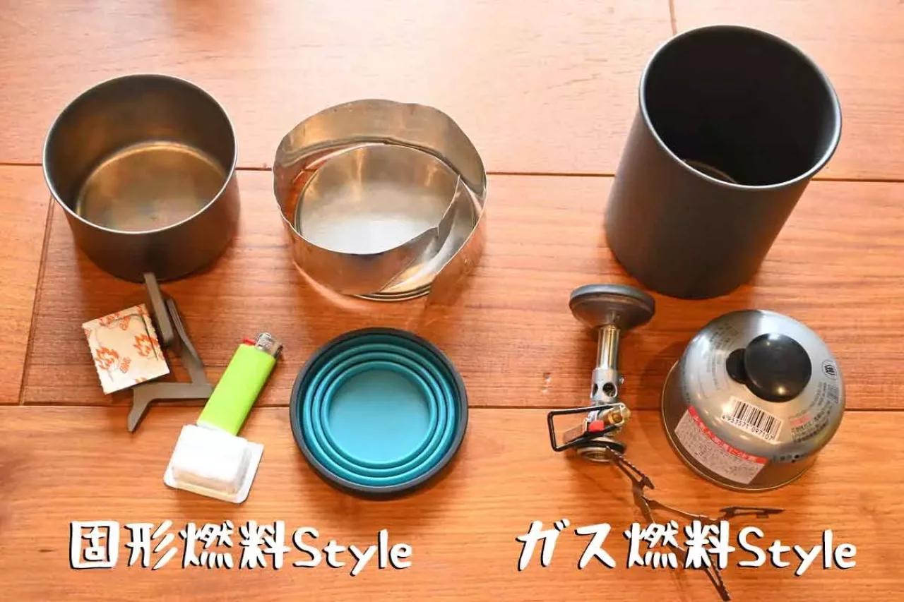 手料理を楽しみたい場合はアルミのクッカーでガスストーブが便利ですが、お湯や水を使った山ごはんにするならば、以下の方法が考えられます。