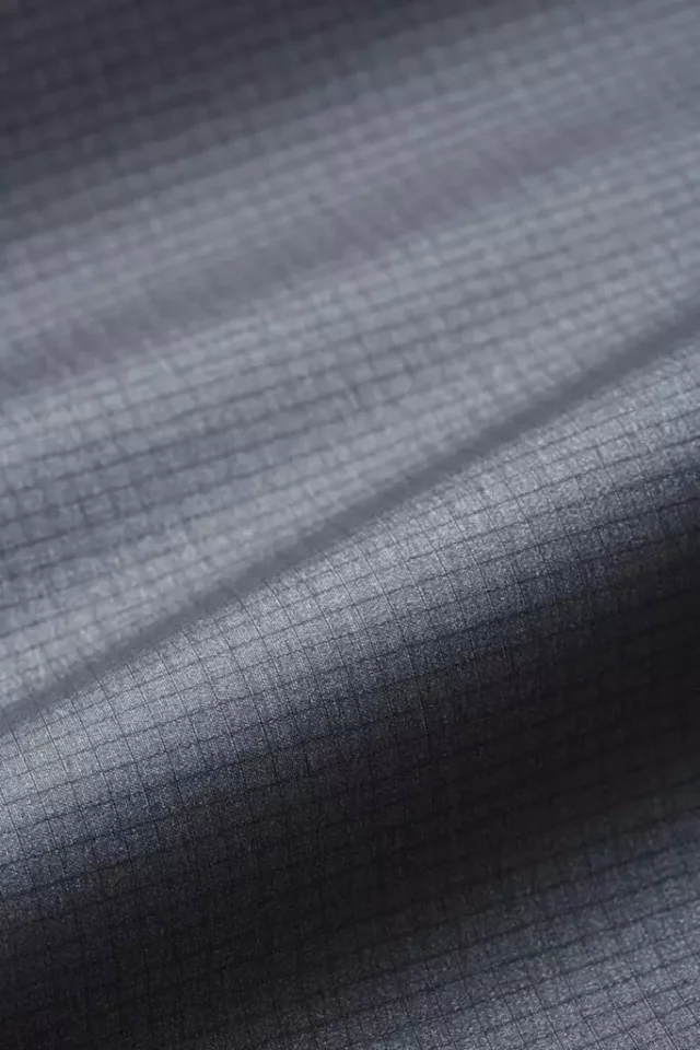 通常レインウェアに使われない裏地にマイクログリッドパッカーがあります。「プロシェル」の裏地として採用されています。「C-KNIT」が編物なのに対して織物で、織った極薄の繊維が内側のレイヤーとしてラミネートされており、防水耐久性に優れとても頑丈で安心感がありますが、パリパリとした感じが出やすい特徴があり多少コンパクト性に欠けます。よって積雪期でも使用できるアルパインジャケットに採用されていることが多い素材です。