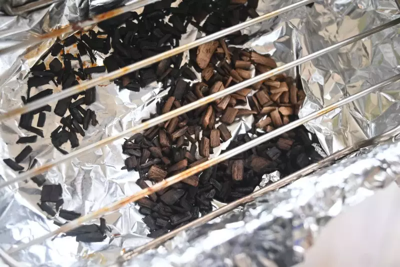 スモークチップスをアルミ箔に置いたらその上に網を置きます。