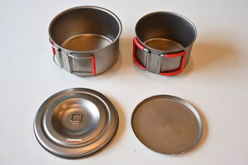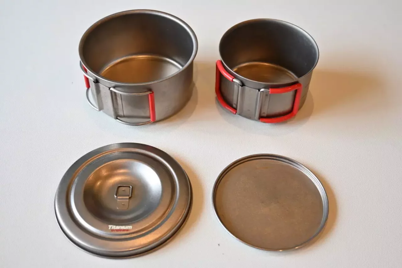 チタンウルトラライトクッカーは、1と2と3が全てスタッキングできる作りなので、全て使用すれば5つスタッキングができます。