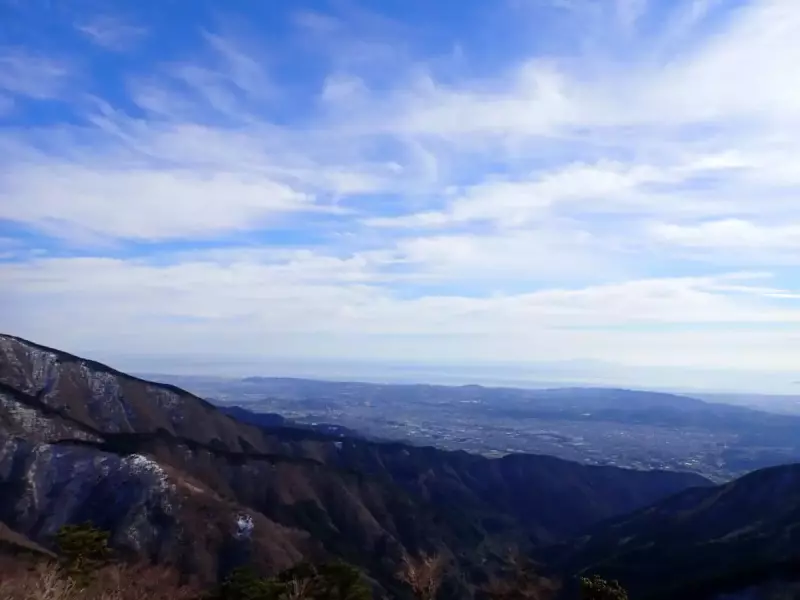 北側は「主脈」と呼ばれる、丹沢最高峰の蛭ヶ岳まで伸びる稜線が見えます。遠くには南アルプスも確認できます。