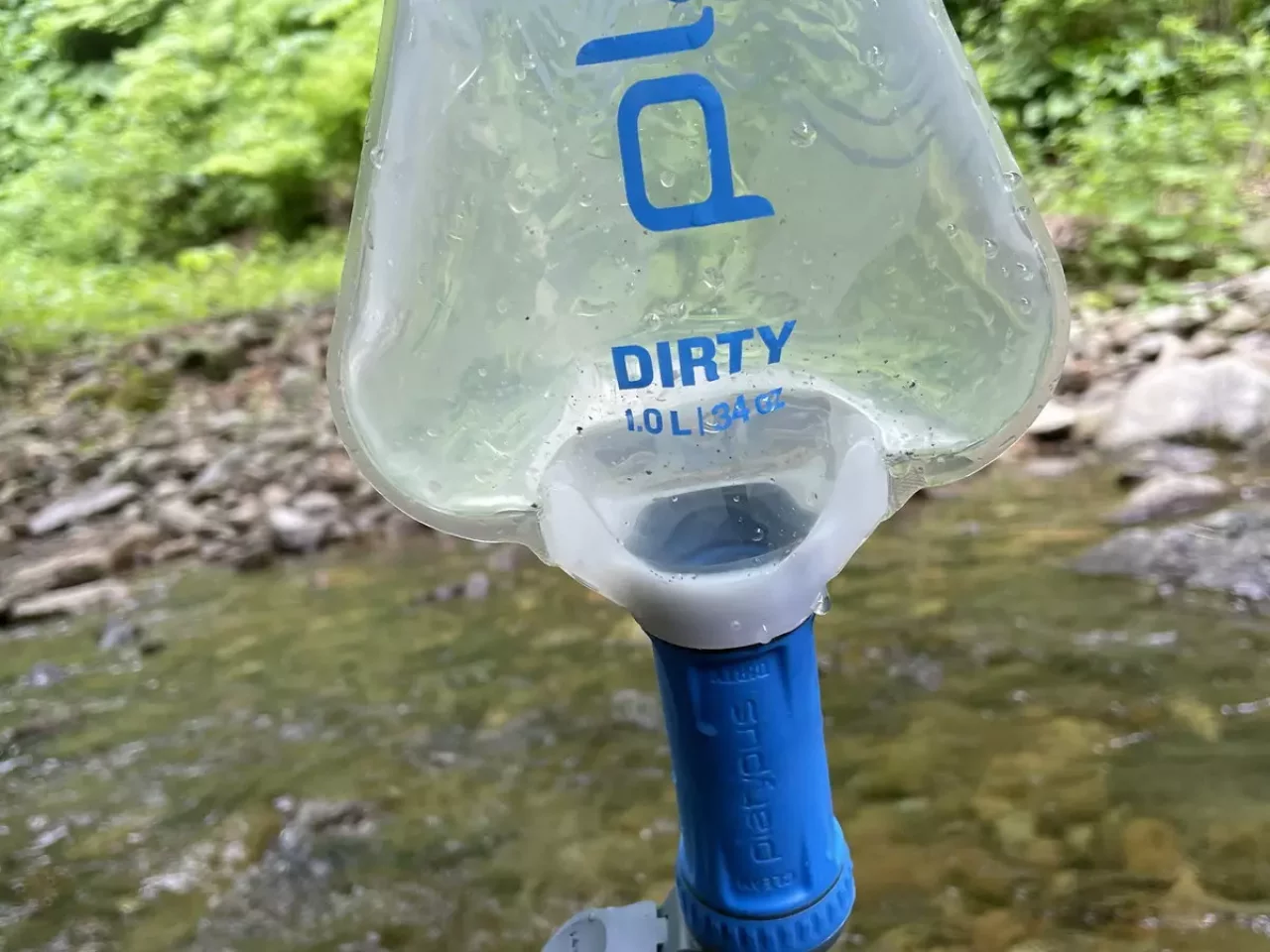 ソフトボトルを握り圧力をかけてきれいな水を作る速さは1分間で3リットルと説明があるように、沢水を使って飲み水や料理用の水を作る際には、他の浄水器と比べても圧倒的な早さに驚きます。