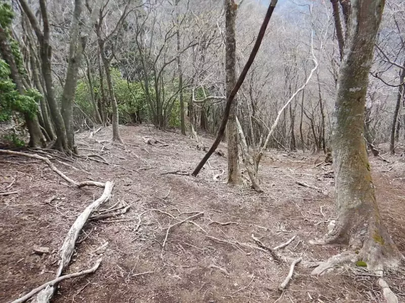 登頂後は大山を目指します。一見して広々とした道ですが「ここかな?」と、道と思える箇所が幾つもあり、地形図を良く見ないと間違えそうになります。