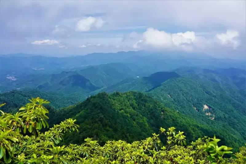 山頂からは周辺に高い山がないため360度の景色を楽しむことができます。紅葉の時期は周辺が真っ赤にり、雄大な景色を楽しむことができます。周辺は低い山ながらも遠く連なる山々のコントラストが楽しめます。