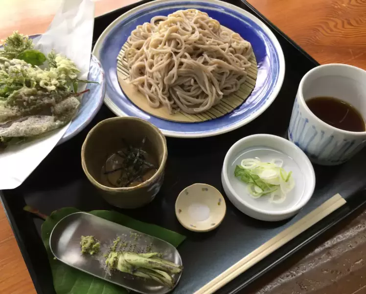 「寶そば」は、奥飛騨産の蕎麦を使用し、冷たい「たるま水」で締める独自の蕎麦料理を提供しています。蕎麦粉は、冬季に熟成し、石臼で挽かれています。奥飛騨産の本わさびも添えられ、風味豊かな食事を楽しむことができます。