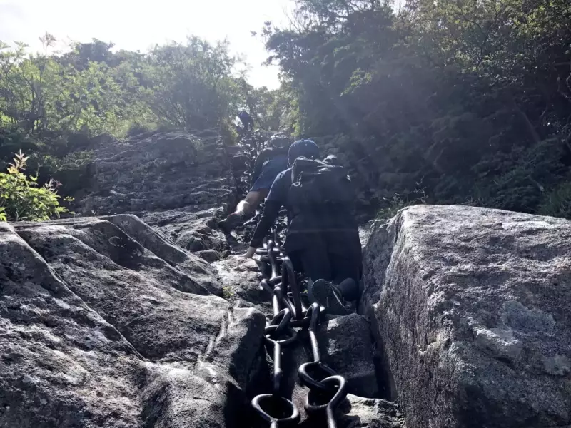 石鎚山の主な鎖場として「試しの鎖」「一の鎖」「二の鎖」「三の鎖」があります。これらの鎖場すべてを楽しめるのは表参道の成就社コースです。