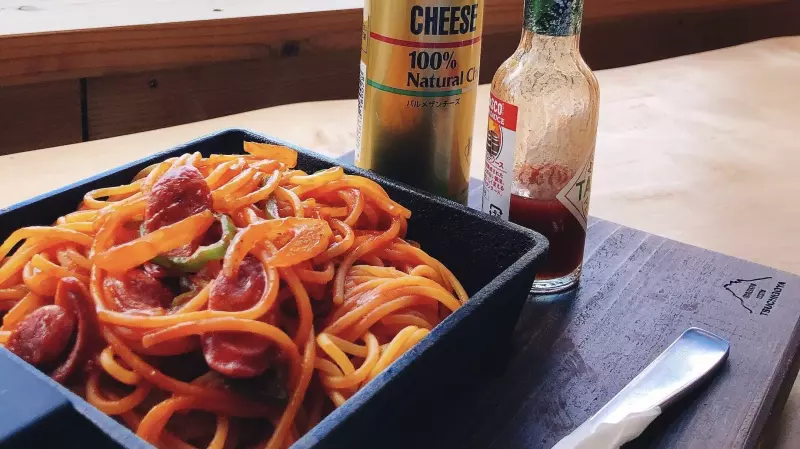 2階の食堂では笹餅やコーヒー・甘酒など手軽に楽しめる一品から、うどんやそばなどの食事メニューも揃っています。中でも、愛媛県西条市のご当地グルメ「鉄板ナポリタン」とシシ肉ウインナーを組み合わせた「シシ鉄板ナポリタン」はシシ肉の野趣あふれる風味がたまらない逸品です。