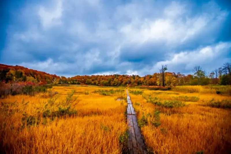 見所は八幡沼湿原の木道を歩きながら楽しむ草紅葉。八幡平の周辺には温泉地が多数あり、紅葉を眺めながら露天風呂に浸かれるのも魅力的です。