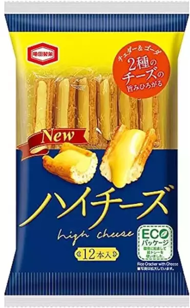 チーズ好きにぜひ食べてもらいたい亀田製菓のハイチーズはチェダーチーズとゴーダチーズの2種類のチーズを使用したチーズあられ。ちょっと贅沢なお菓子感覚で楽しめます。登山で不足しがちな塩分をしっかりと補うことができるので行動食にもオススメです。