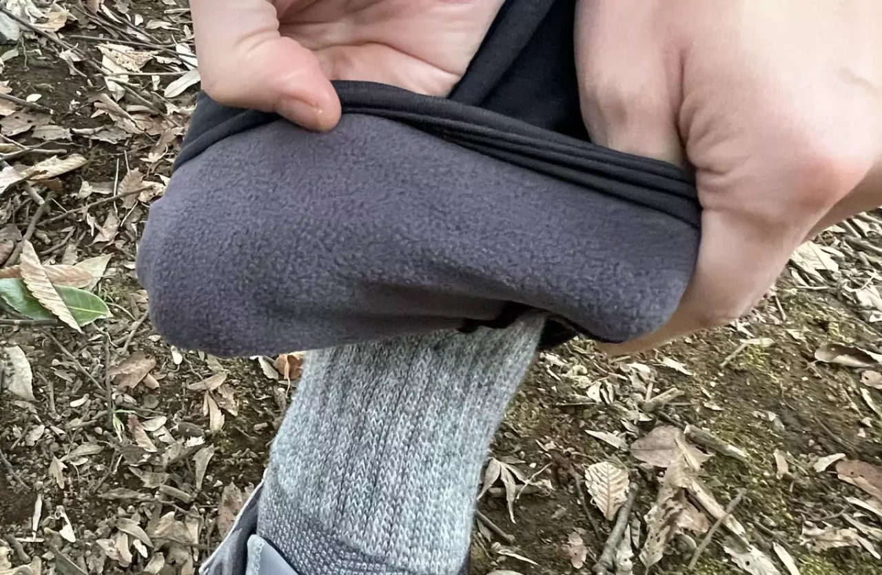 裾に向かって細くなるスリム・フィットなので足元が見やすく、トレイルランニングシューズからハイカットの登山靴にまで合わせやすいです。
