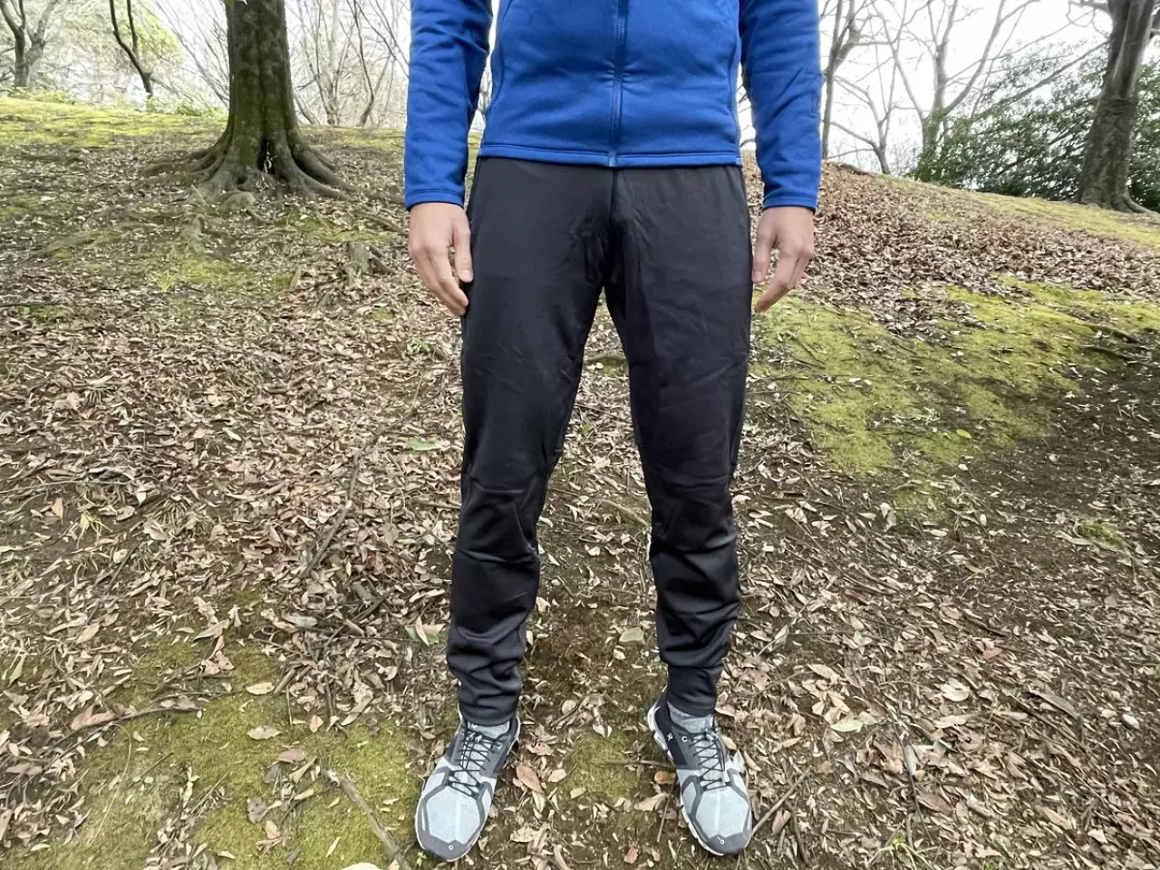 R1デイリーボトムは冬山登山やスキーでのタイツ代わりとしても着用できます。また内側に起毛フリースを備えているのでほどよく暖かく、伸縮性素材なのでハードな動きにも追随する特徴を備えアクティビティ時に動きやすく、程よい通気性で汗をかきづらい特徴を備えています。だからトレイルランニングやファストパッキングなんかにも使えます。