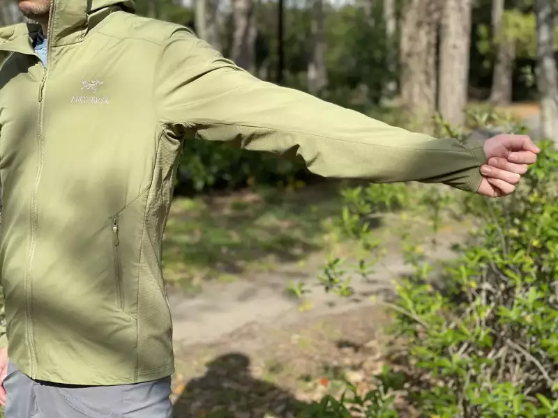 腕はインサレーションが入っていないぶん保温力が低いことは否めませんが、ウィンドブレーカー+アルファの耐風性を備えており、どちらかと言うと汗抜けの良さの方でメリットを感じることが多いです。Tシャツを着用して休憩時に保温着として着用する時にも、袖部分が汗でベタつかず、メッシュ地によるさらりとした肌触りで快適です。