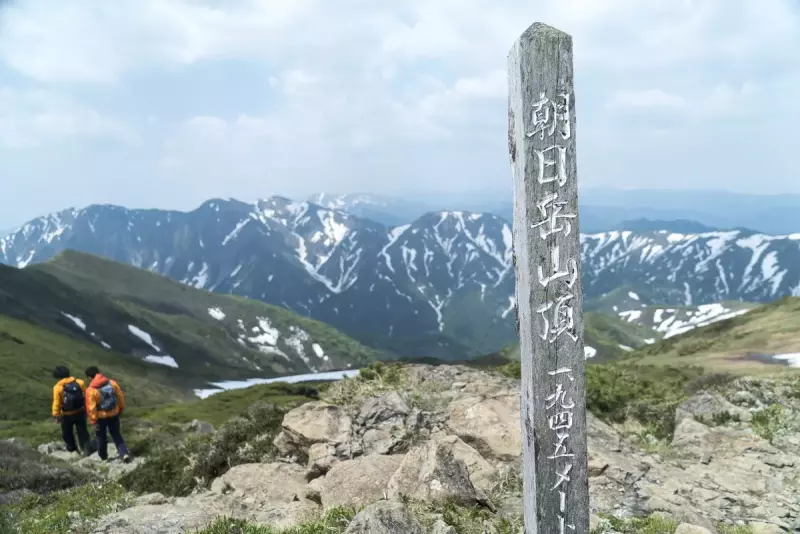 トマの耳手前は東斜面のため7月頃まで残雪が残ります。トマの耳に到着すると雄大な景色が広がり一気に疲れが吹き飛びます。